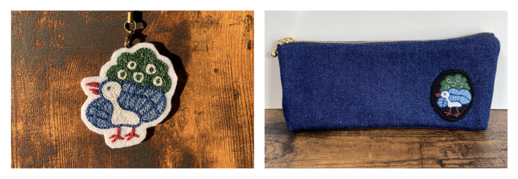 手刺繍で麻雀モチーフの布小物を作っています。